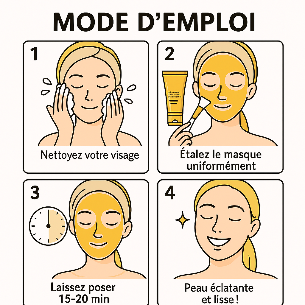 Un mélange unique de curcuma et collagène qui combine éclat, hydratation et soin anti-âge, le tout dans un masque peel-off simple et efficace.